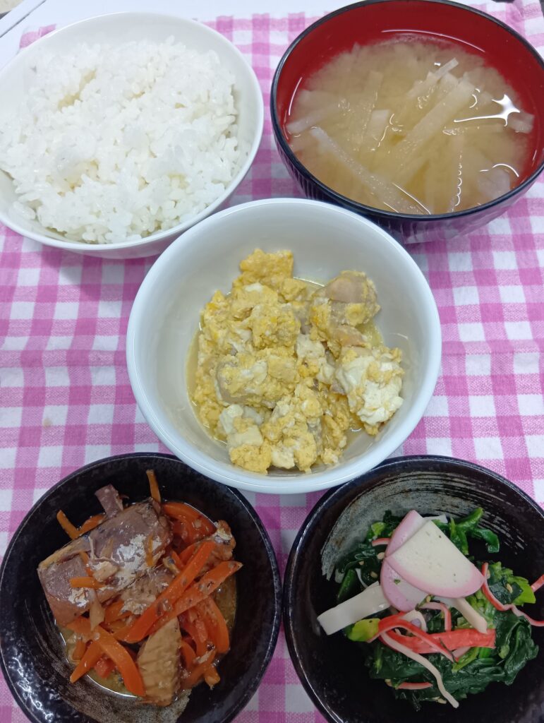 2026年3月5日 / 最終更新日時 : 2026年3月5日 hinokinomori3bell 今日のお昼ごはん 親子煮、さば味噌しりしり、ほうれん草かまぼこポン酢和え、お味噌汁、ご飯FacebookXBlueskyHatenaCopy