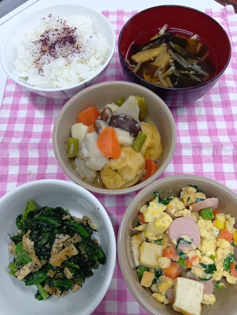 2026年3月16日 / 最終更新日時 : 2026年3月16日 hinokinomori3bell 今日のお昼ごはん がんも里芋煮、小松菜ごま和え、玉子ウインナーソテー、もやし汁、ゆかりかけご飯FacebookXBlueskyHatenaCopy