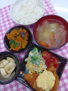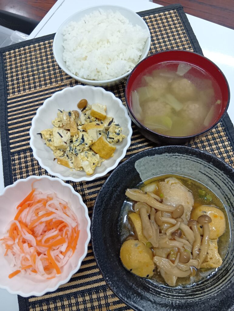 2026年3月19日 / 最終更新日時 : 2026年3月19日 hinokinomori3bell 今日のお昼ごはん 魚𓆜煮付け、なます、厚揚げ玉子炒め、肉団子スープ、ご飯FacebookXBlueskyHatenaCopy
