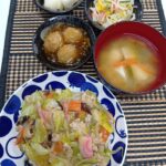 2024年6月29日 / 最終更新日時 : 2024年6月29日 hinokinomori3bell 今日のお昼ごはん 豚肉とキャベツの炒め物 パプリカの塩昆布和え トマトときゅうりのサラダ みそ汁 ごはん