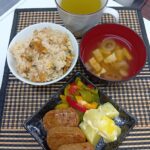 鶏バターソテー、厚揚げうま煮、トマポテサラダ、お味噌汁、ごはん