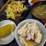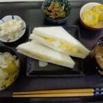 2025年11月8日 / 最終更新日時 : 2025年11月8日 nerimamatsu3bell 今日のお昼ごはんサンドイッチセット 肉吸い さつまいもご飯 マカロニサラダ 茄子とオクラの煮浸し 茹でとうもろこし